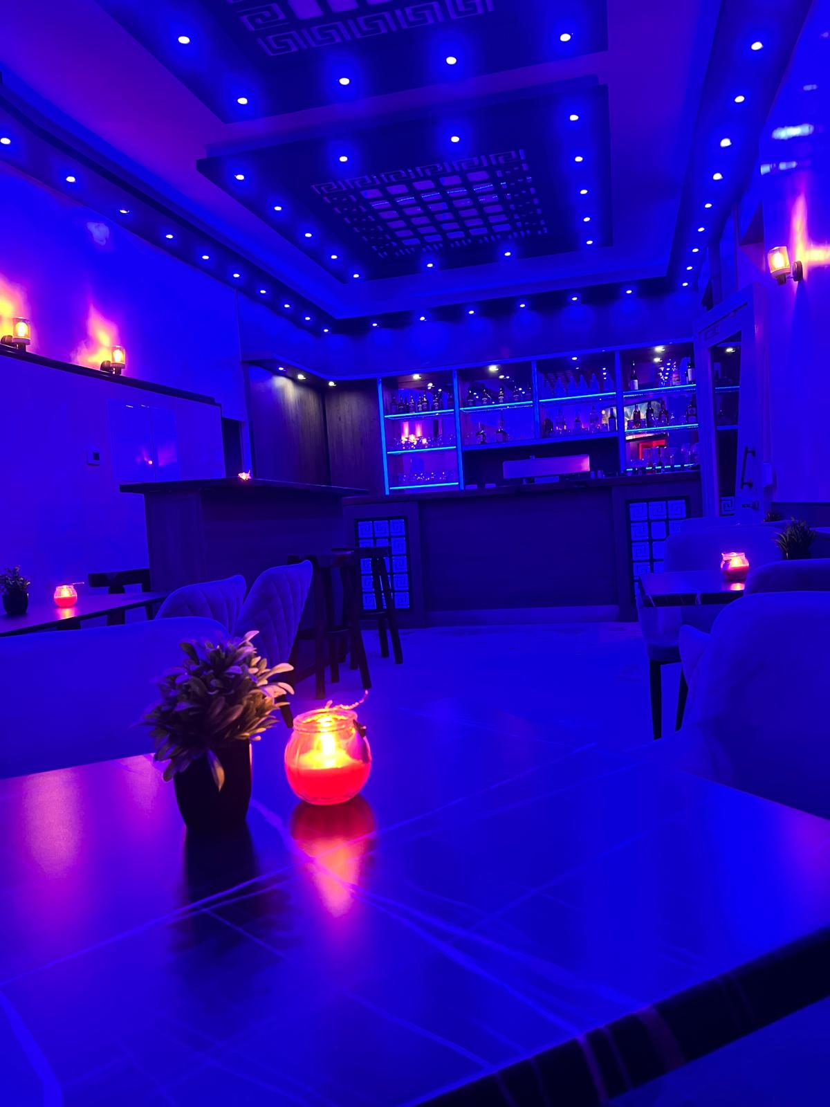 Tauche ein in die einzigartige Atmosphäre der Nook Shisha Bar Lounge — blaues Licht, warme Kerzen, Kaminfeuer und ein Ambiente zum Verlieben.